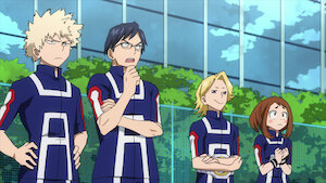 Izuku passes Aizawa's athletic test, but he's ranked at the bottom of his class and his ex-friend Katsuki resents him. Luckily, he makes new friends.