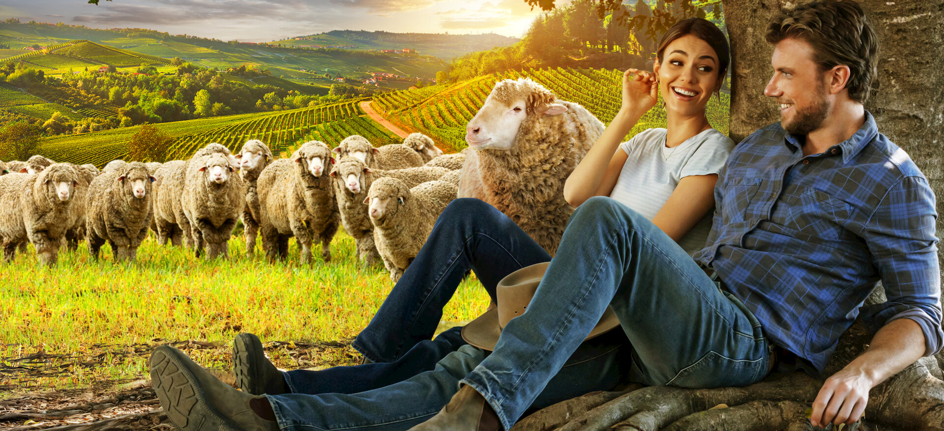 Para ganarse a una clienta importante, una emprendedora ejecutiva vinícola trabaja en un criadero de ovejas, donde cruza flechazos con un tosco y misterioso lugareño.