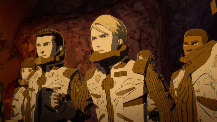 عمل متقن الصنع والسعادة والألم وخيال علمي ومشاهد بصرية مؤثّرة وياباني والنجاة وفيلم أنيمي وأكشنالصوت
