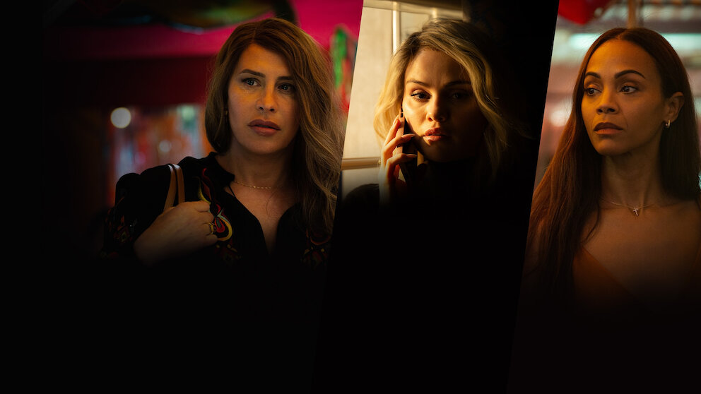 Elenco: Zoe Saldaña, Karla Sofía Gascón y Selena Gomez