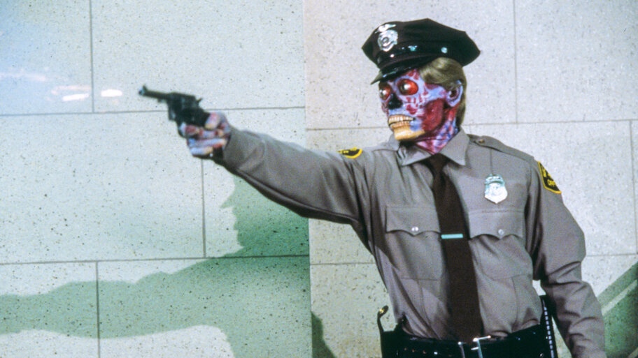 Um homem acha um par de óculos escuros especiais que mostra outra realidade: um mundo cheio de mensagens subliminares e controlado por forças do mal.