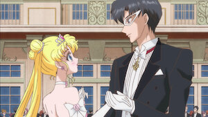 Tuxedo Mask protege Sailor Moon de um ataque e perde a consciência. A angústia do momento desperta algo em Sailor Moon.
