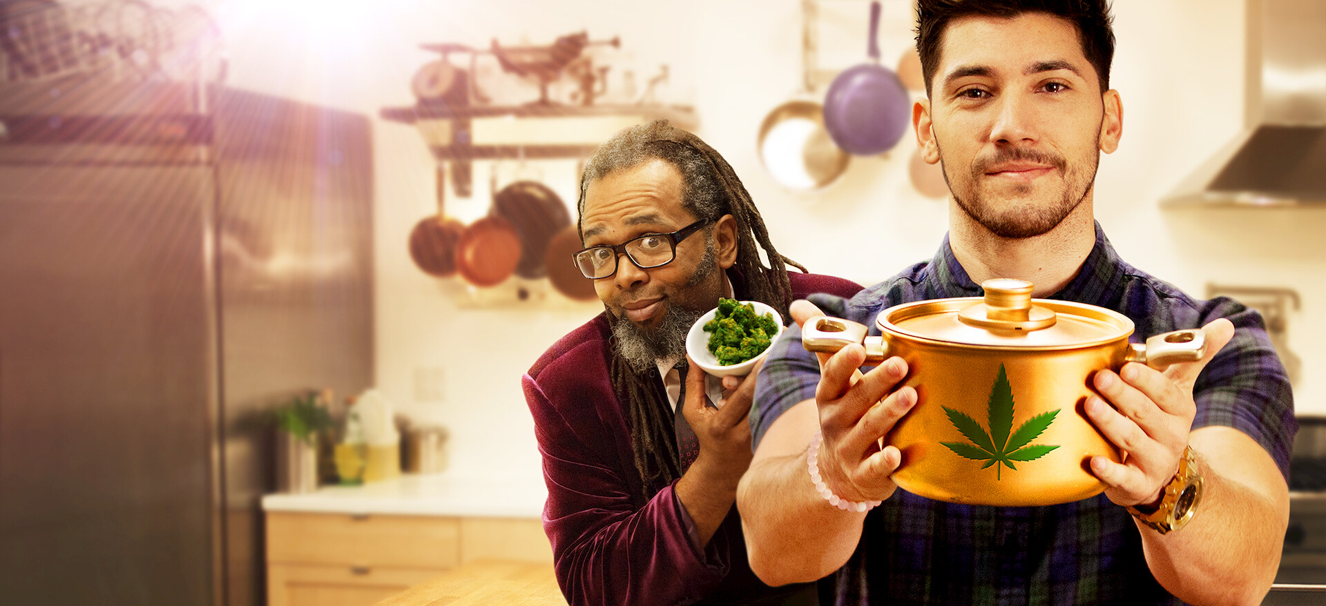 V první soutěžní kulinářské show s marihuanou připravují dva šéfkuchaři vynikající jídla pro porotu, která bude asi dost v pohodě.