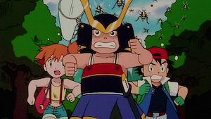 Un essaim de Dardargnan en colère interrompt un combat avec le Chrysacier de Sacha, mais ce dernier s'enfuit en laissant son Pokémon derrière lui.