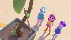 ¡El dron de Harper está fuera de control! Para evitar que el juguete volador se pierda para siempre, el trío lo persigue por todo el parque.