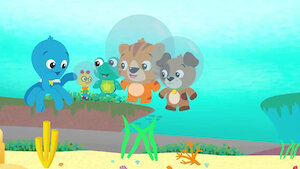 Los exploradores disfrutan un día de playa entre castillos de arena, arrecifes tropicales, pulpos jugando a las escondidas y pequeñas tortugas dando sus primeros pasos.