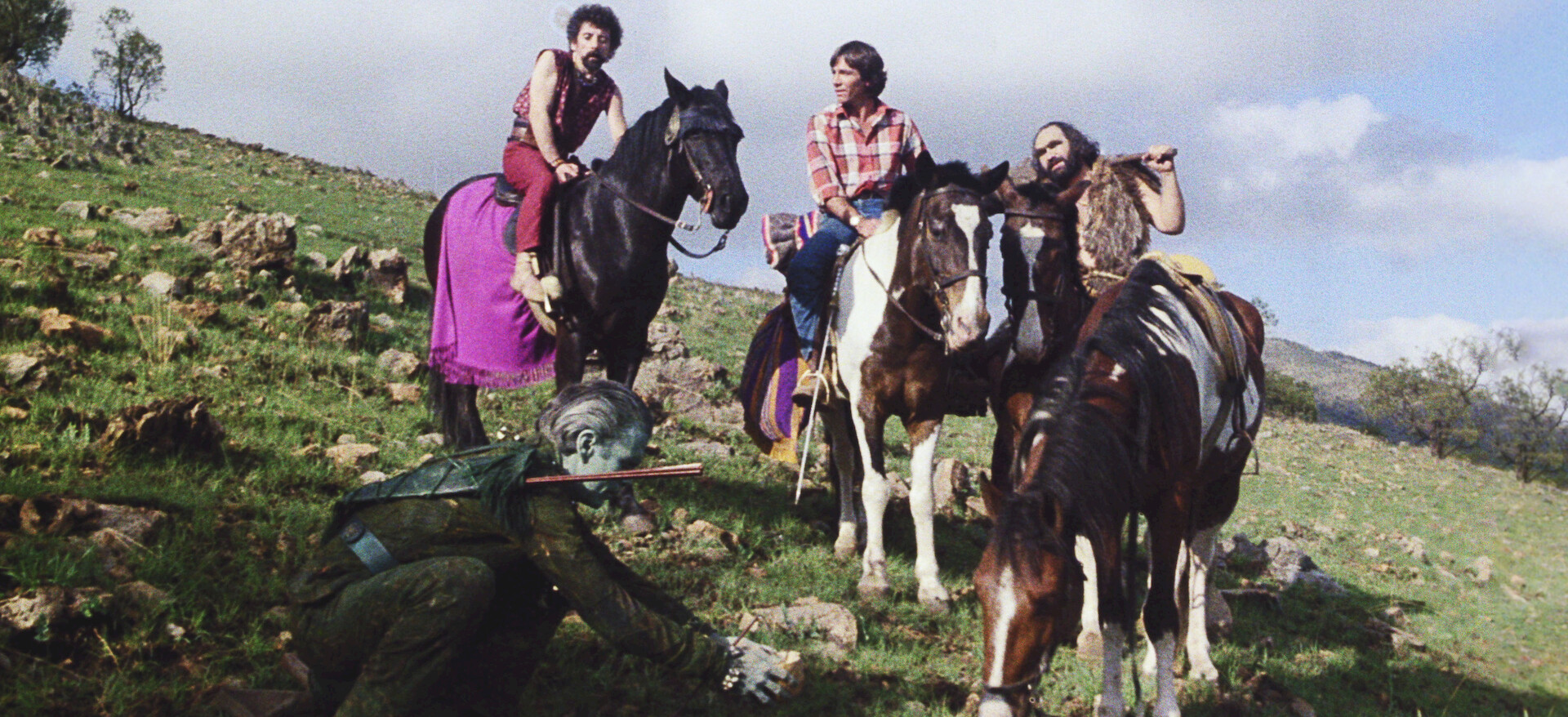 Transported to a medieval land with mythical creatures and savage warlords, three people must use their wits and 1980s technology to return home.