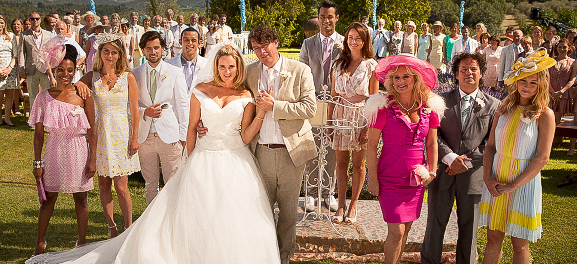 Ägarna till en lyxig villa i Toscana välkomnar förälskade par och deras gäster att fira vackra och ibland en aning förvirrande bröllop.