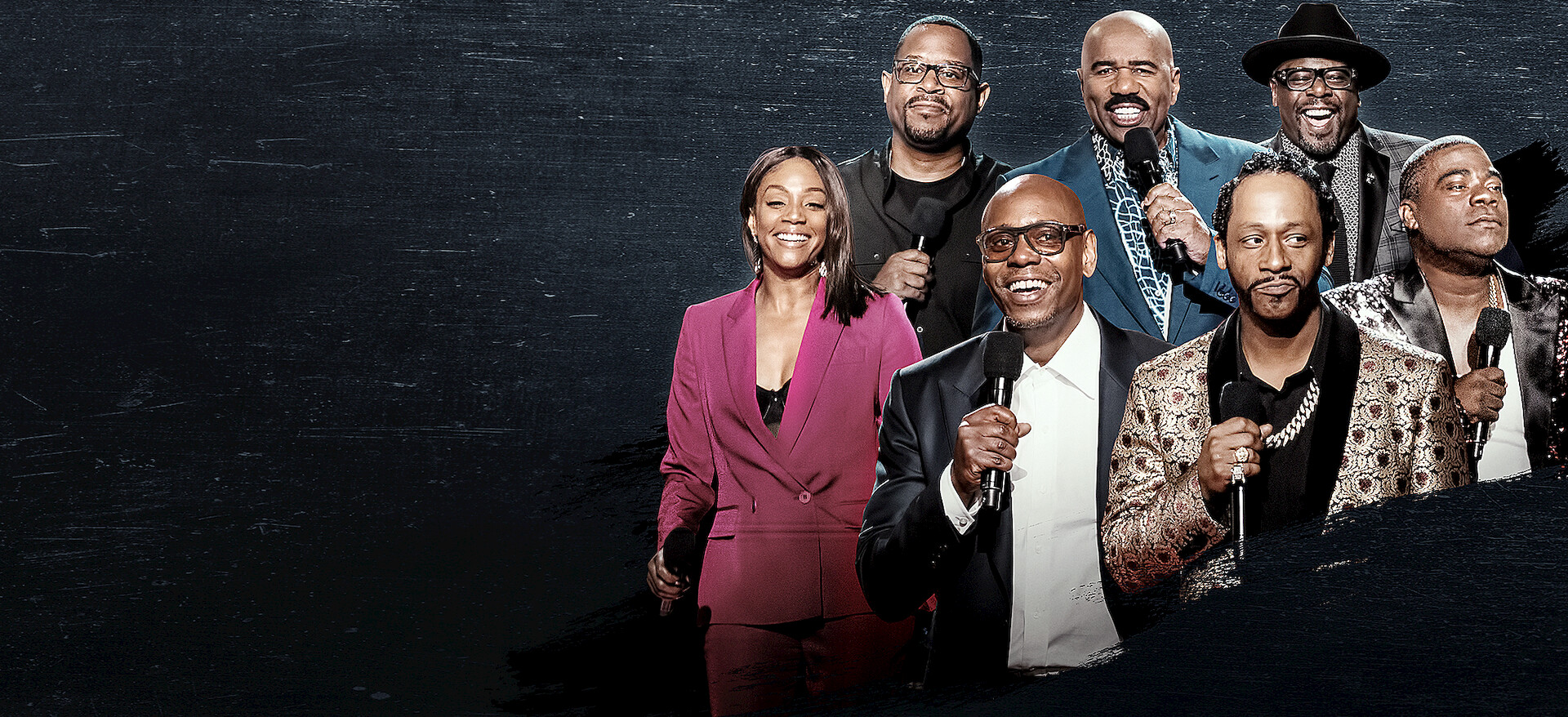 Dave Chappelle, Steve Harvey, Cedric the Entertainer, Martin Lawrence, Tiffany Haddish, Katt Williams, Craig Robinson, D.L. Hughley, Eddie Griffin, J.B. SmooveYou might also like