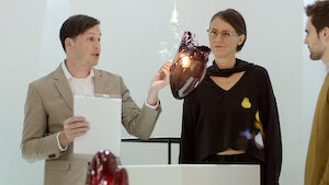 En un desafío sorpresa, los cuatro concursantes finales trabajan en parejas para diseñar piezas que exploren la temática de dualidad.