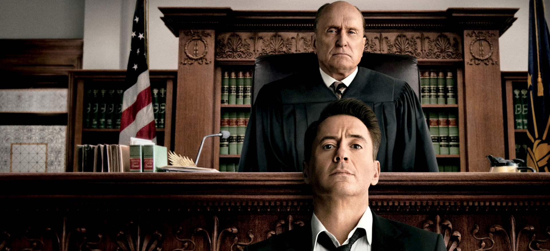 After returning to his hometown for his mother's funeral, an attorney stays to defend his estranged father — a revered judge — against a murder charge.
