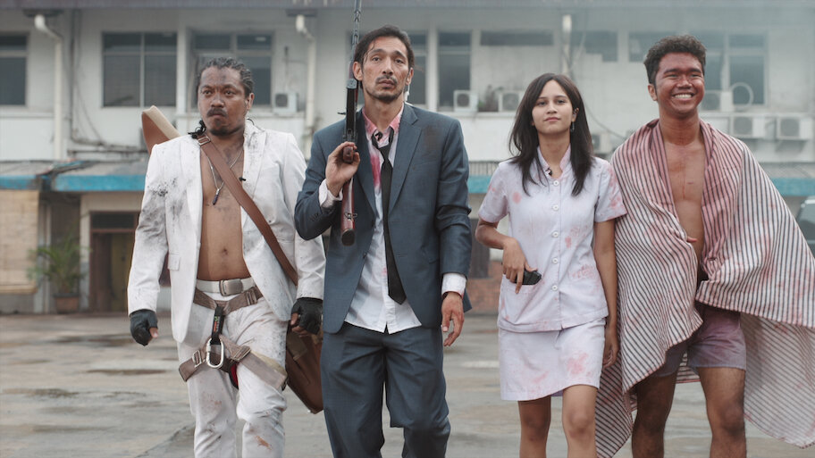 Explosive, Offbeat, Dark Comedy, Ensemble, Detectives, Indonesian, Critically Acclaimed, Cops, Action Comedy, and MovieAudio