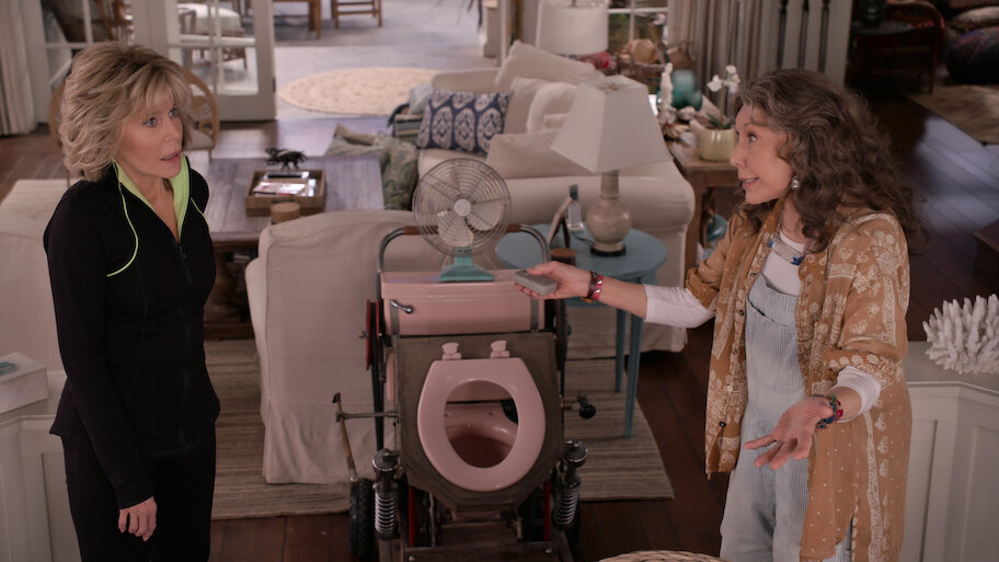 Grace and Frankie are stunned when their husbands inform them that they want divorces. They're even more stunned when they find out why.