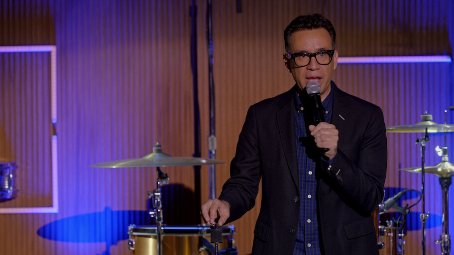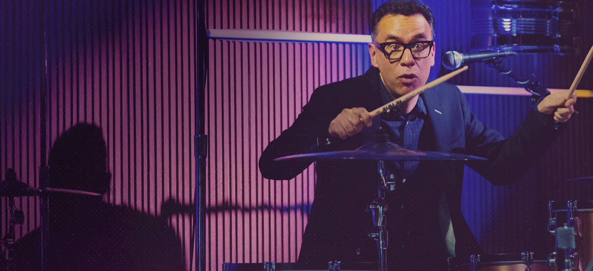 コメディアンのフレッド・アーミセンが、音楽や"ドラマーあるある"、各地の訛りを題材に、ドラマーなら絶対ツボるネタを提げ、観客のドラマーたちを沸かす。