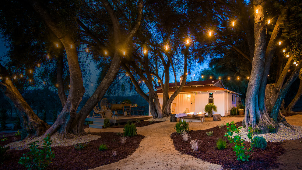 ブドウ園に囲まれた、古めかしいコテージ。くたびれた宿が、リゾートウェディングというユニークな体験の一貫として、エレガントな場所に生まれ変わる。