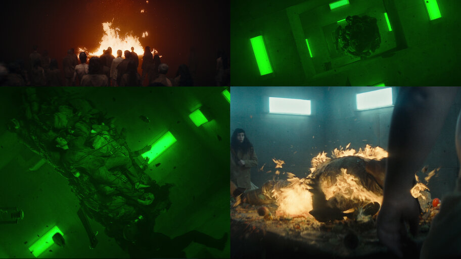 謎の人物が独自のルールの下で支配する、縦型構造の施設。新たに来た者たちは、その残酷な食事供給制度と闘おうとするが...。