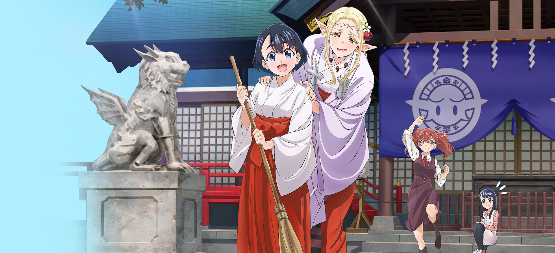 神社の巫女(みこ)になり、ご神体であるエルフに仕える社交的な高校生。ところがこのエルフ、ゲームをこよなく愛し、日がな一日ぐうたらするのが大好きな引きこもりだった。