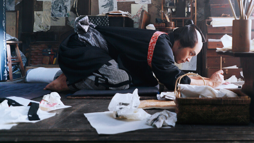 町人文化華やかなりし江戸の町。無名の貧乏絵師・葛飾北斎は、著名な浮世絵版元である蔦屋重三郎によってその才能を見いだされる。だがやがて、その人気が幕府に目を付けられることになり...。