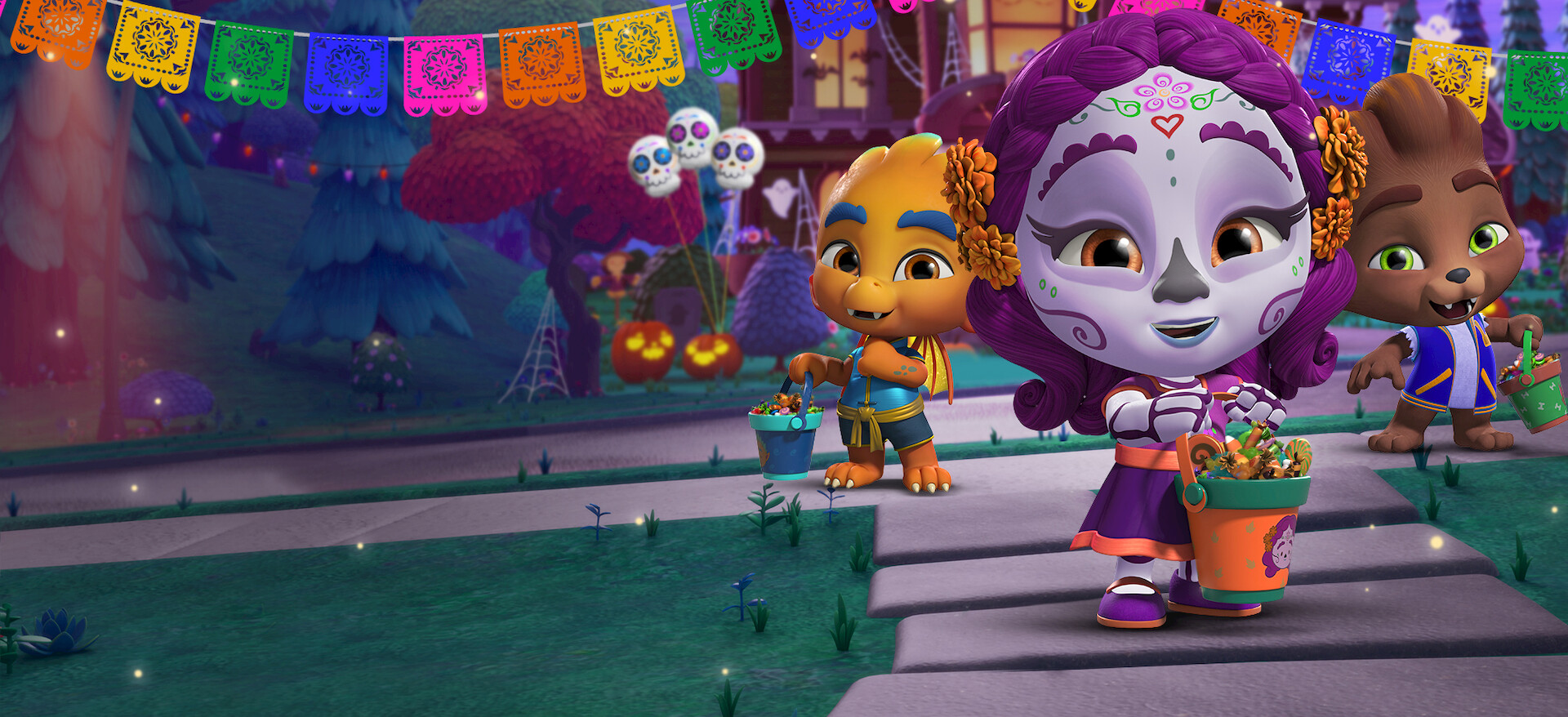Los Supermonstruos comparten sus tradiciones de Halloween con Vida y luego reciben una invitación para la fiesta del Día de los Muertos en lo de los Howler.