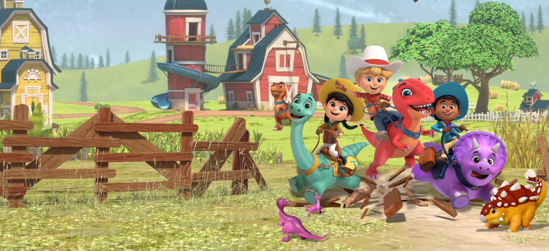 Les enfants Cassidy, Jon, Min et Miguel montent en selle en quête d'aventure dans le ranch familial où errent de sympathiques dinosaures !