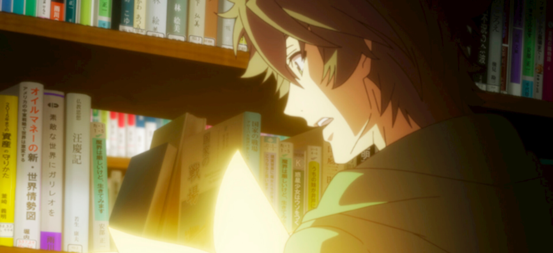 Student Naofumi opens a strange book in the library and magically reawakens in another world as the Shield Hero, alongside three other heroes.