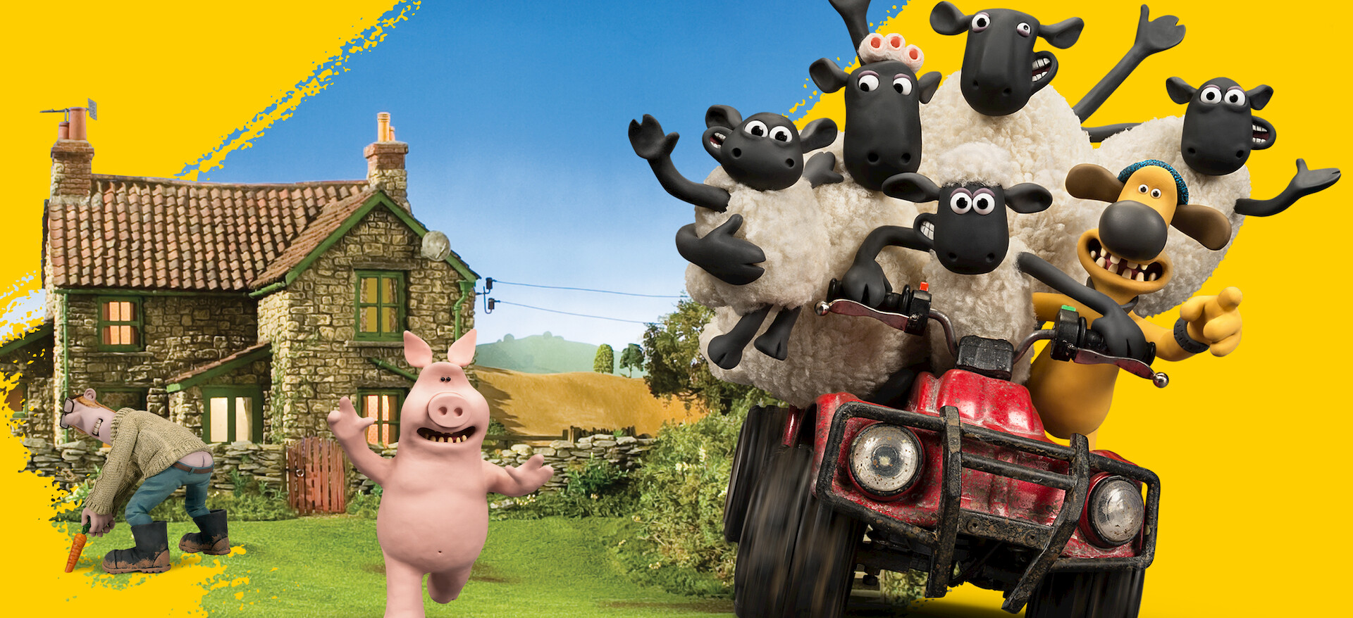 Beleef boerderij-avonturen met Shaun en zijn neef Timmy, de gigantische herdershond Bitzer, jaloerse kat Pidsley en schaap Shirley.