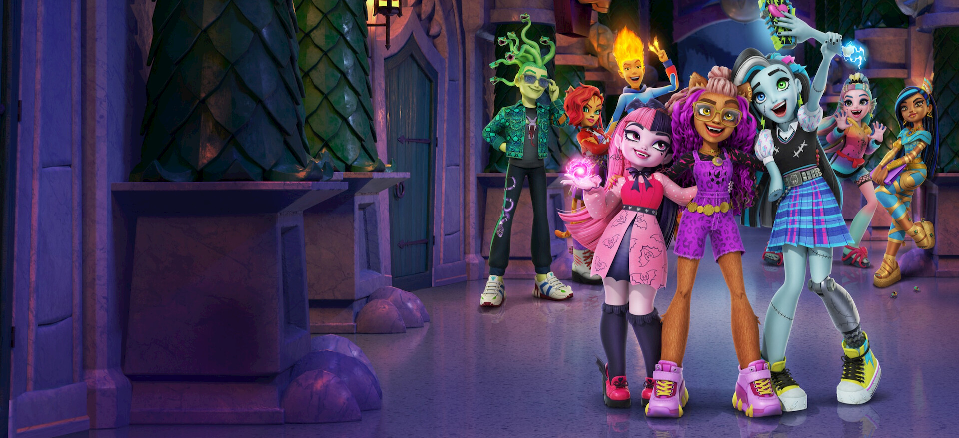 Clawdeen and her roomie BFFs, Frankie Stein and Draculaura, set out on playful adventures with their monstrous classmates at a supernatural high school.