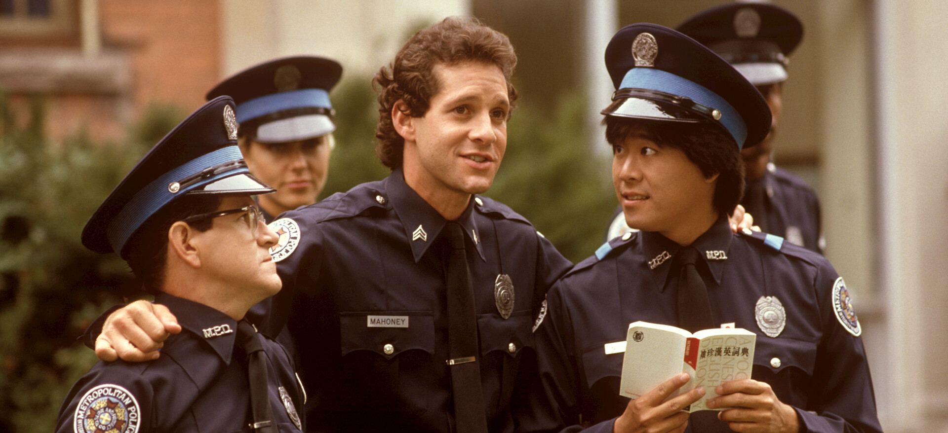 Steve Guttenberg, Bubba Smith, David Graf, Michael Winslow, Marion Ramsey, Leslie Easterbrook, Art Metrano, Tim Kazurinsky, Bobcat Goldthwait og George GaynesPopulært nå