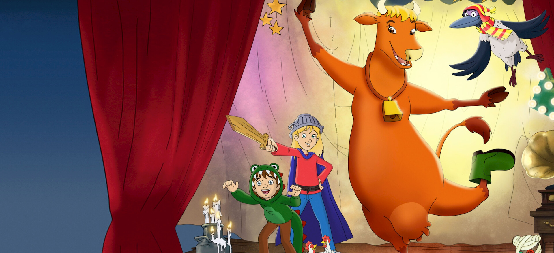 Mamma Mø vil ha hovedrollen i sin egen musikal på gården, men først må den nysgjerrige kua finne en forsvunnet bamse med hjelp av den lettskremte Kråka.