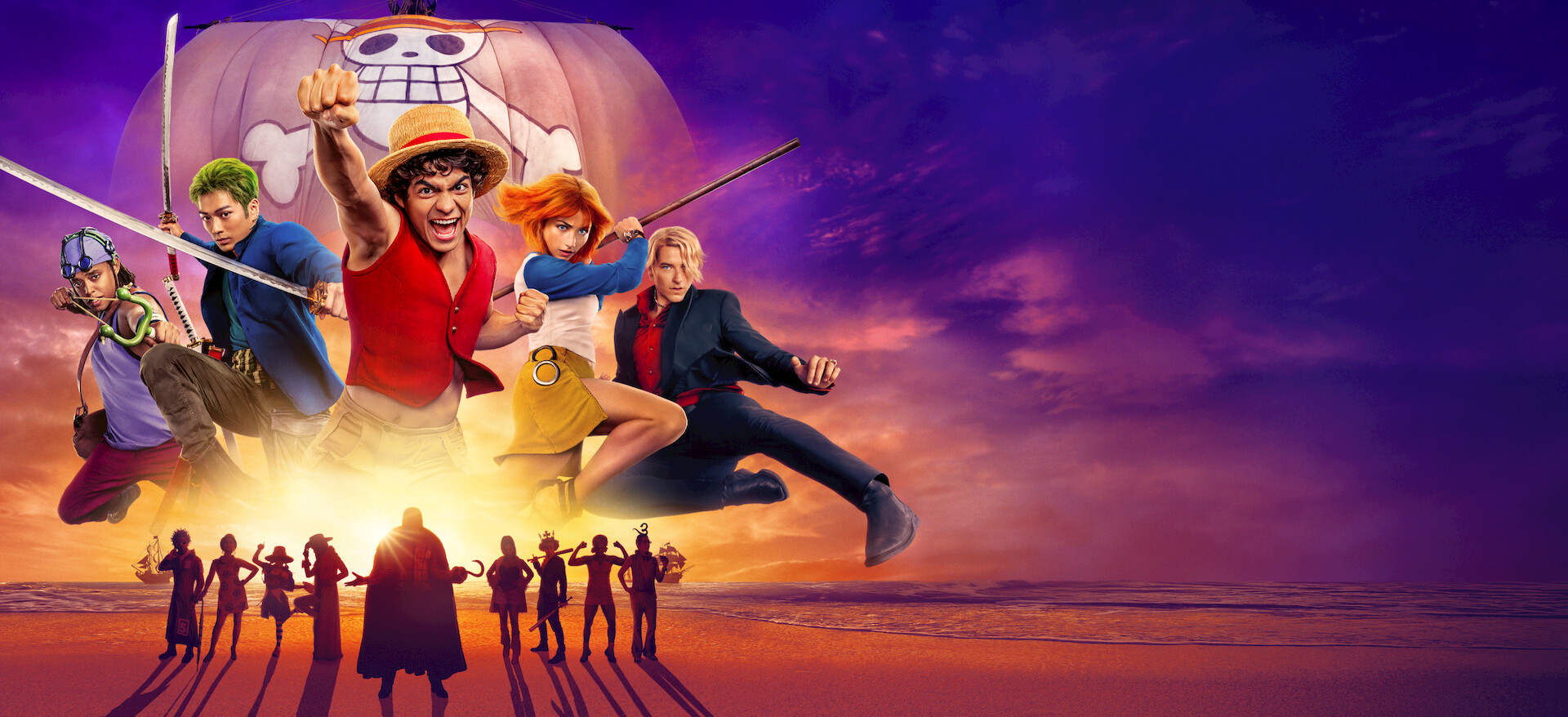 يبدأ "لوفي" هانئ البال، والعالق في قارب متهالك، رحلته للبحث عن كنز مفقود يملكه زعيمُ قراصنة، ولكن عليه أولاً أن يعثر على طاقم عمل وسفينة وخريطة.