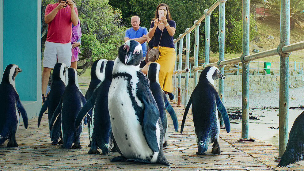تنجرف البطاريق نحو الشاطئ في وقت الغزو السنوي… ومن بينها توأم روح منذ زمن، وثنائي حديث الزواج، وبطريق منبوذ يحتاج إلى مساعدة من المختصّين.