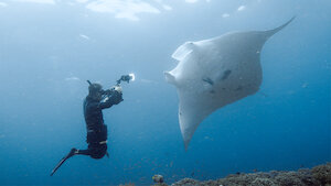 Shawn fortsätter sin kamp för bevarandet av det marina djurlivet genom att resa till Indonesien och ta förtrollande bilder av mantor vid Raja Ampat-öarna.