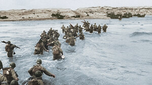 在精心策划的欺敌行动掩护下,史上最大规模的海上登陆部队横渡英吉利海峡后在诺曼底登陆。