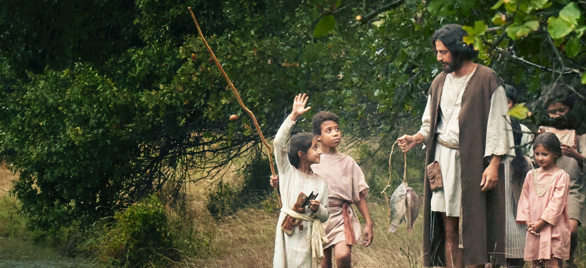 年少的亚比该、约书亚和他们的朋友在树林里遇见耶稣,并开始聆听他的教导。