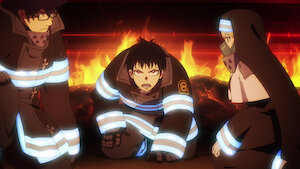 After a murderer transforms into a rampaging Infernal, Shinra rushes to confront him. Company Five's mercurial Captain Hibana interferes in the fight.