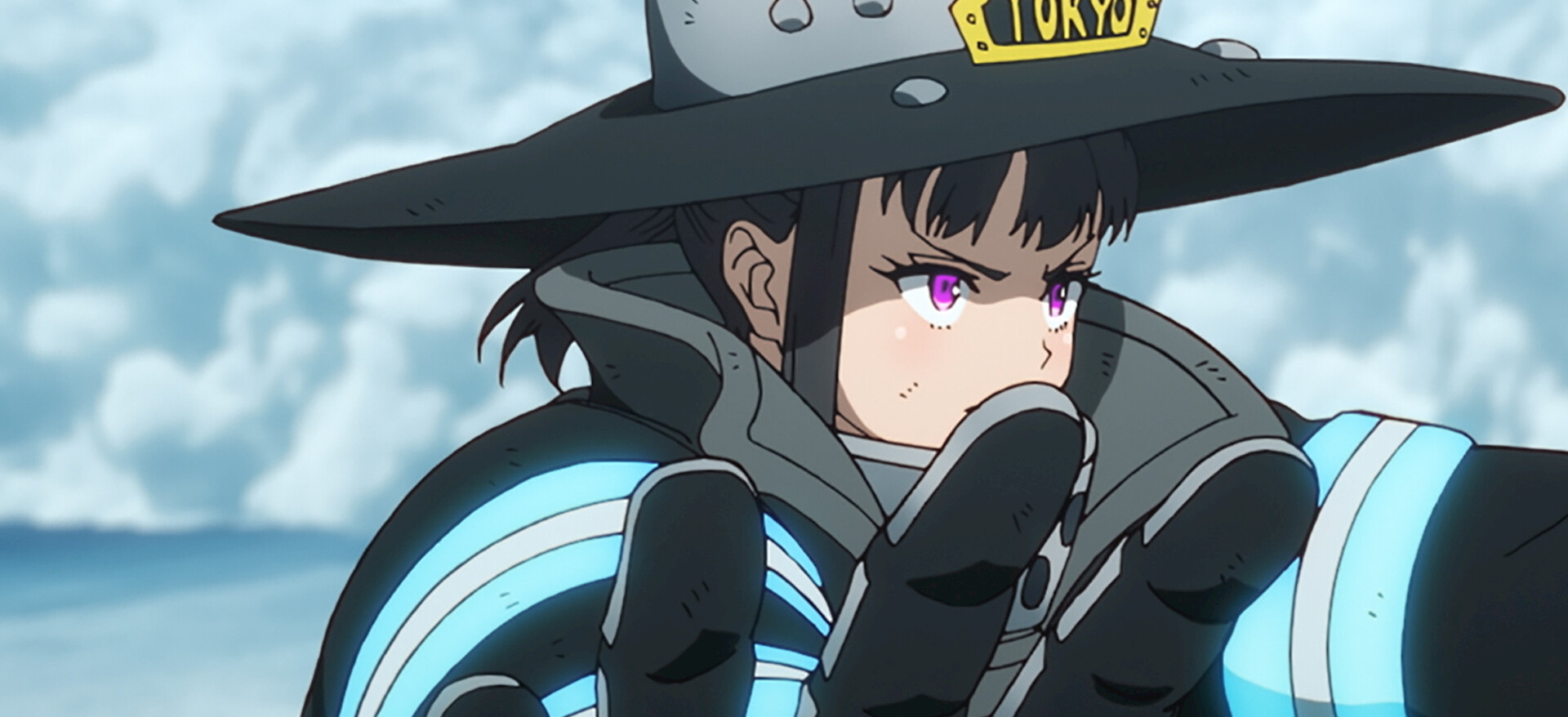 Shinra races to confront Hibana and save his comrades. His foe's immense power quickly makes him see stars and he struggles to stand and face her.