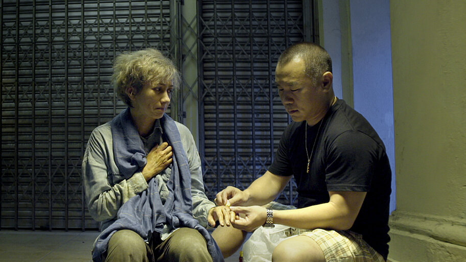 A prejudiced man chases away a homeless woman sleeping behind his restaurant. To his shock, his wife then brings her home to live with them.