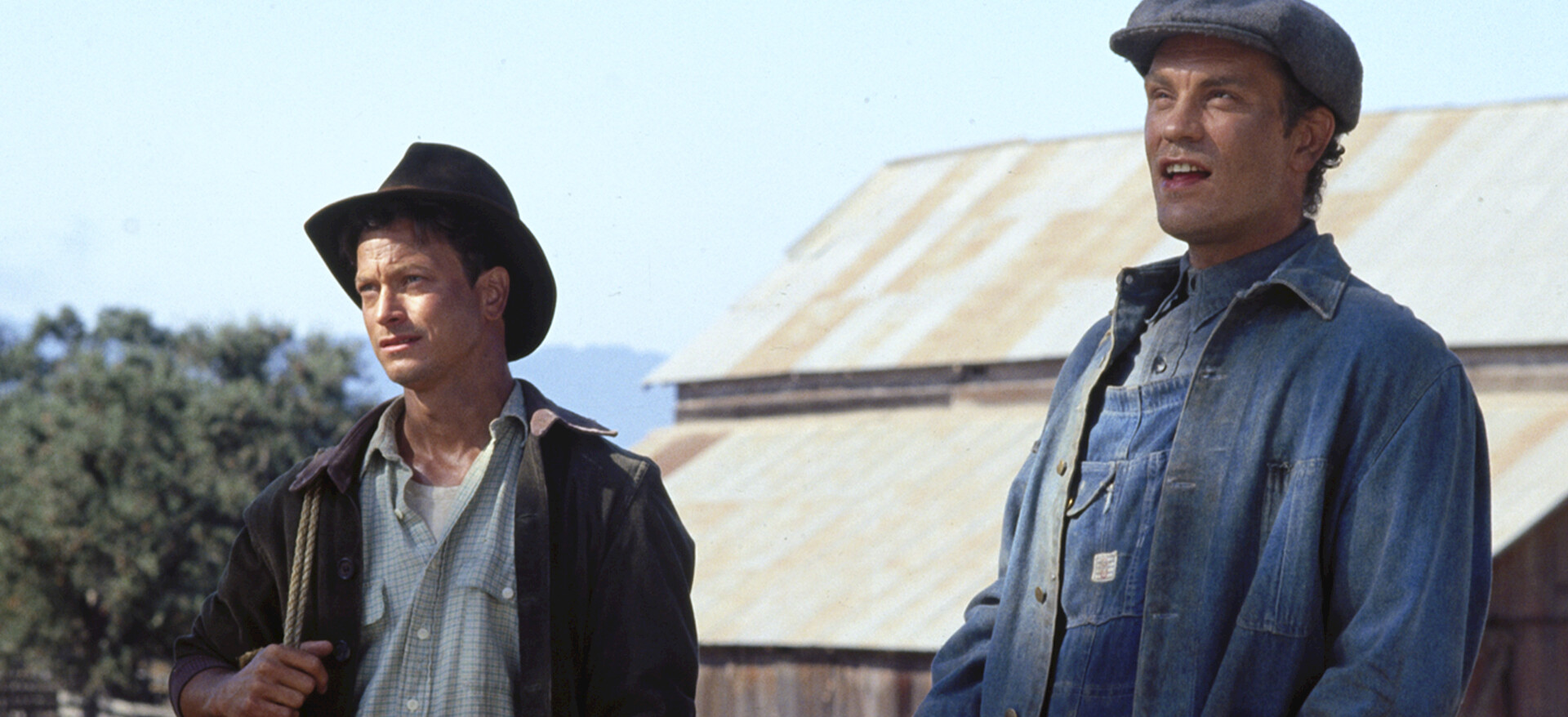 Two migrant workers, one a gentle simpleton and the other his protector, find jobs in Depression-era California, only to have their hopes destroyed.