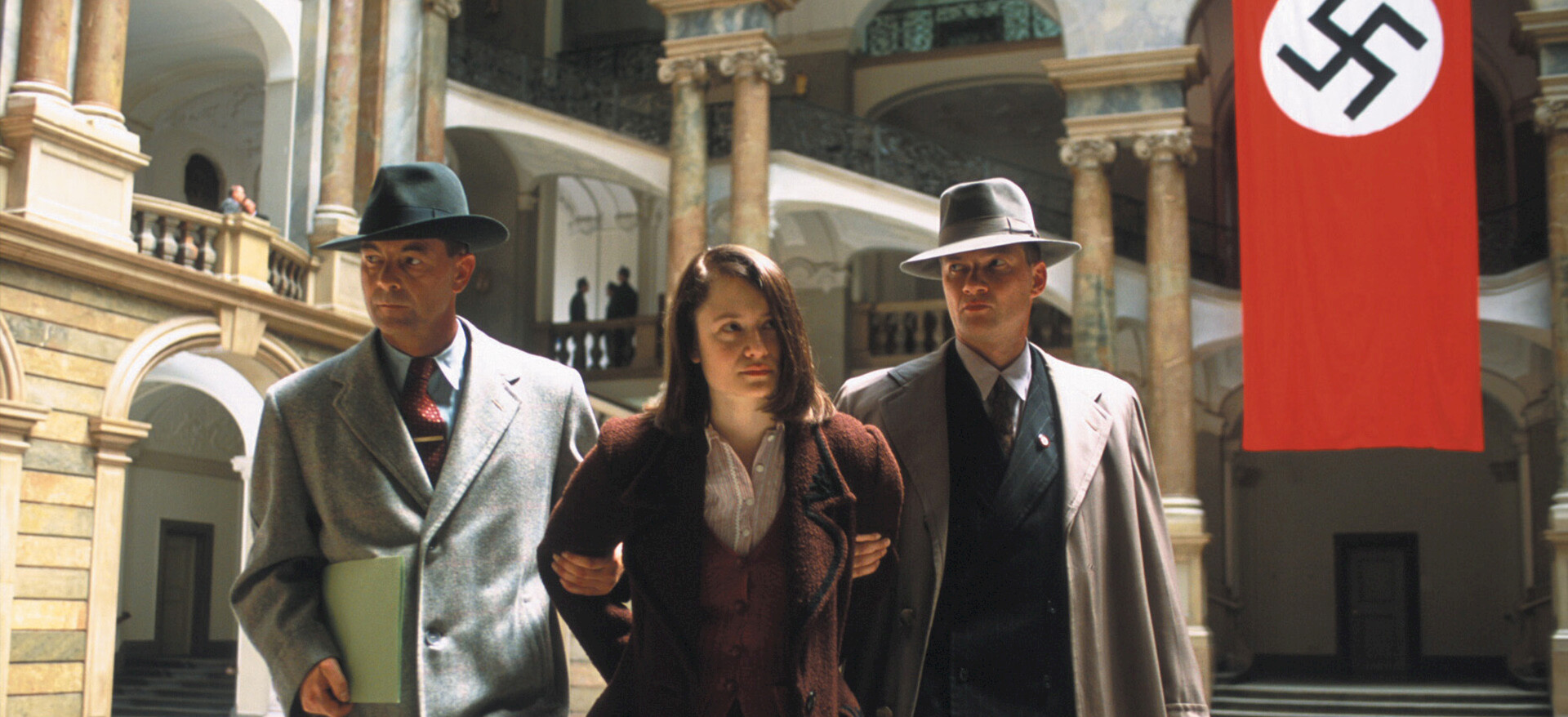 Arrested for participating in the White Rose resistance movement, anti-Nazi activist Sophie Scholl is subjected to an interrogation by the Gestapo.