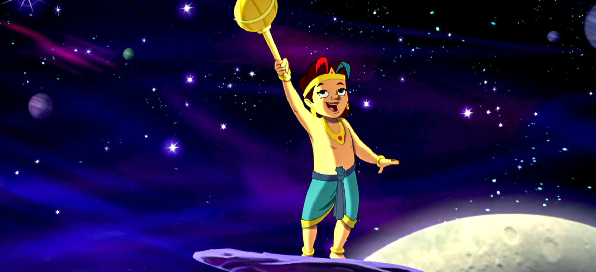 Magical forest prince Ghatothkach and his elephant pal Gajju rescue animals, challenge demons and even play Cupid in this musical animated adventure.
