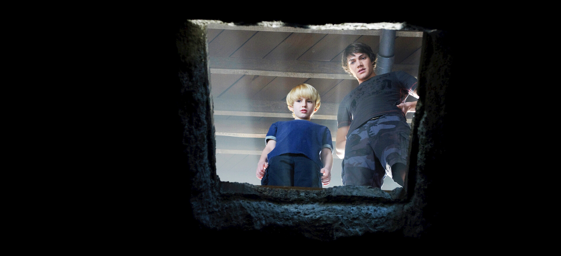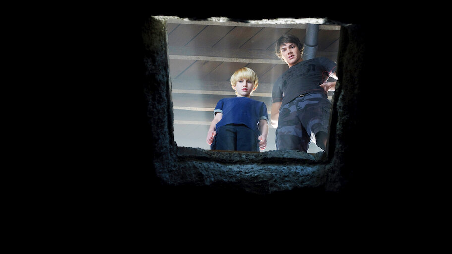 Two boys and a neighbor girl discover a mysterious trap door concealing a bottomless hole that leads to excruciating pain and misery.