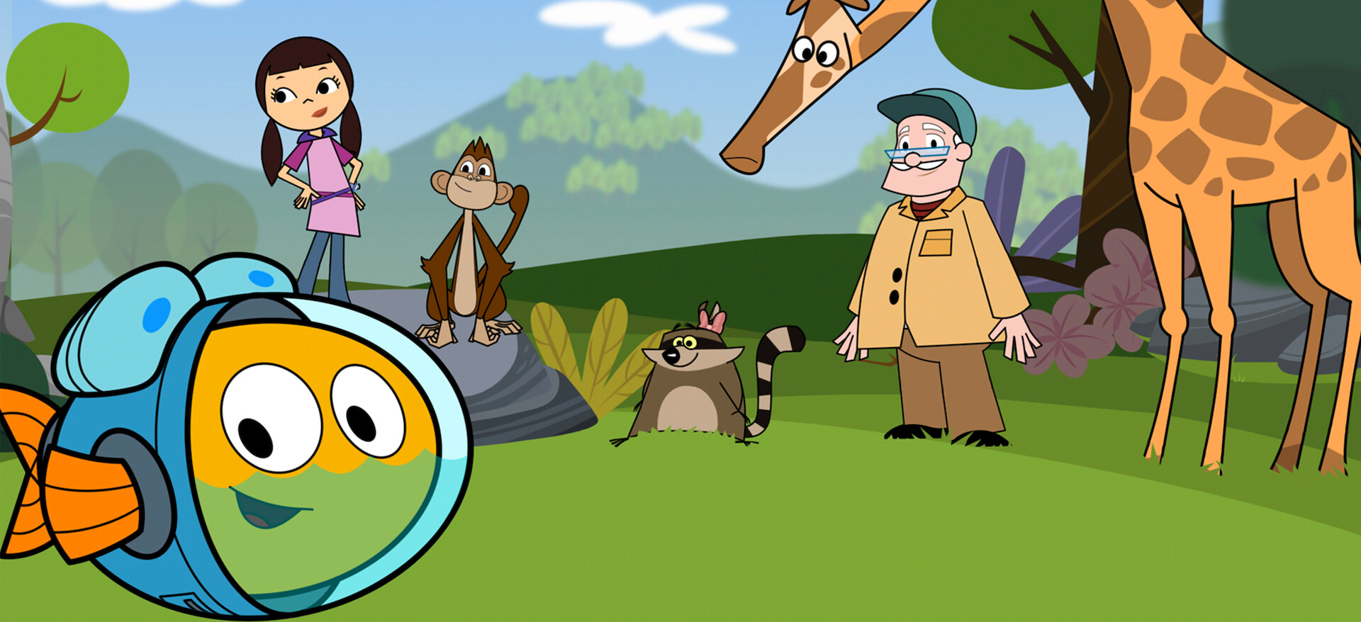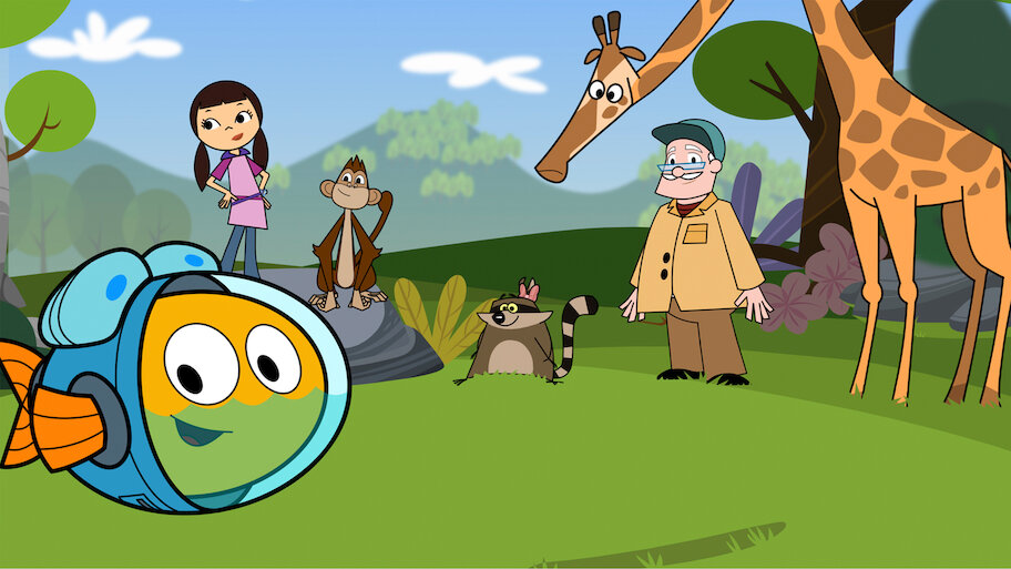 Fishtronaut, a water-suit-wearing fish, travels on land to solve mysteries, and helps viewers learn how to protect the environment.
