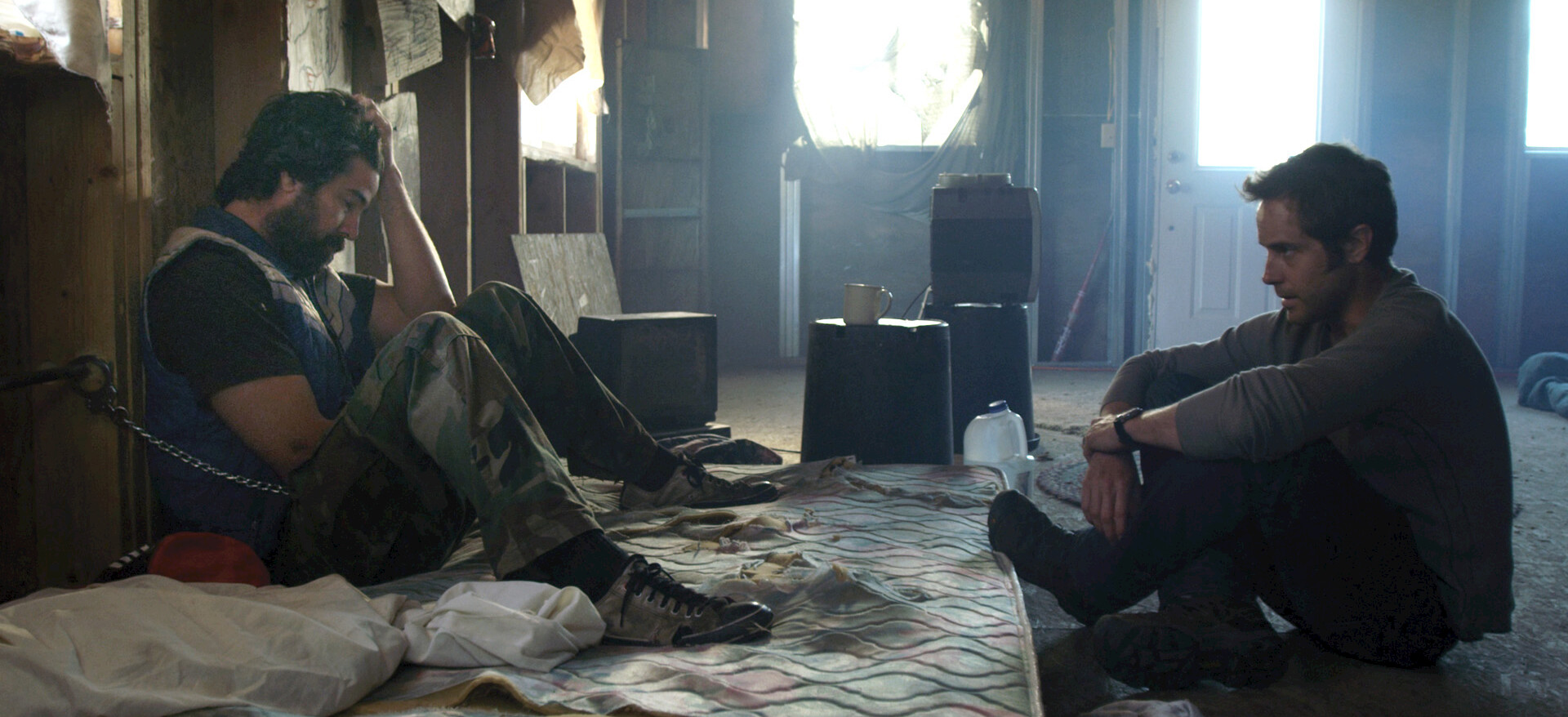 Chris spends his days smoking crack at his remote forest cabin until his friend Michael arrives, planning to hold him hostage until he's clean.