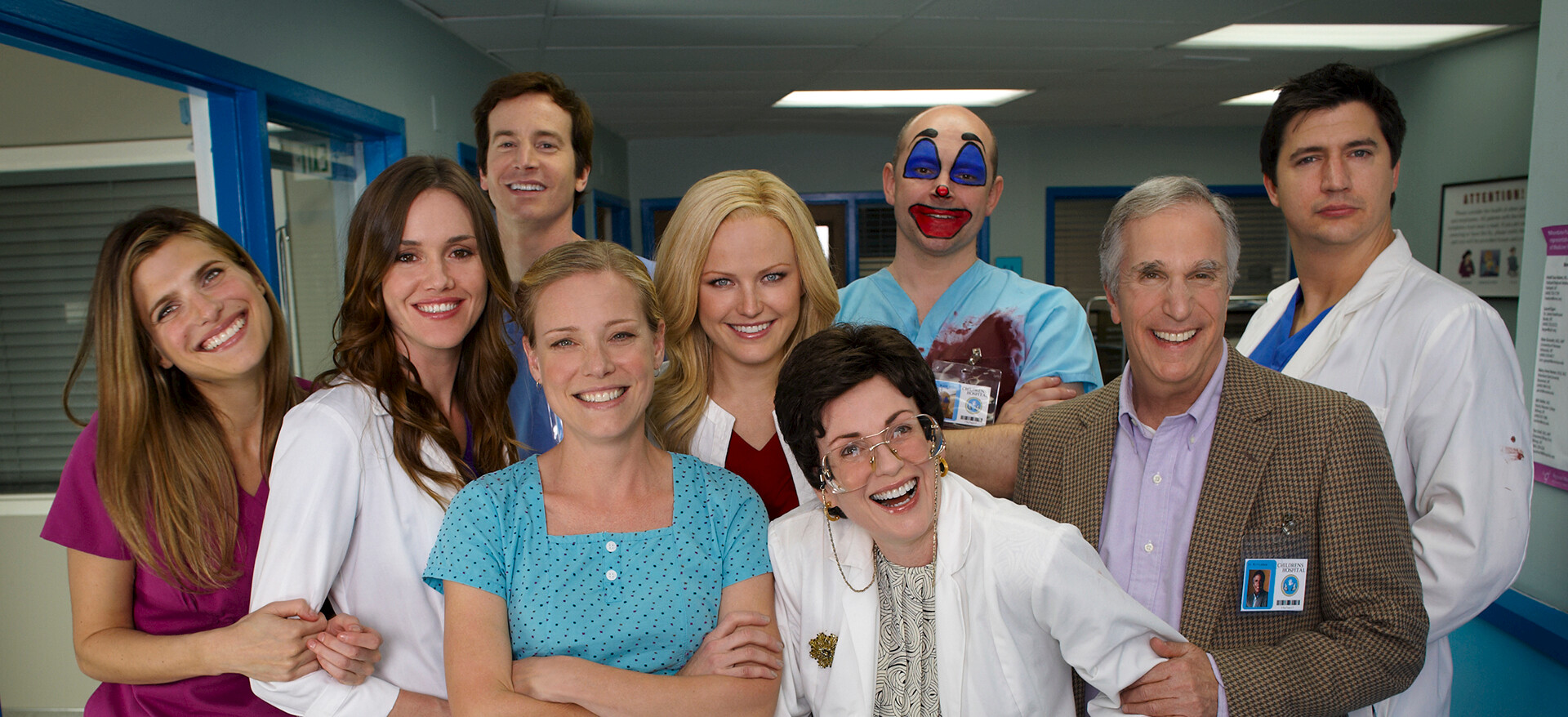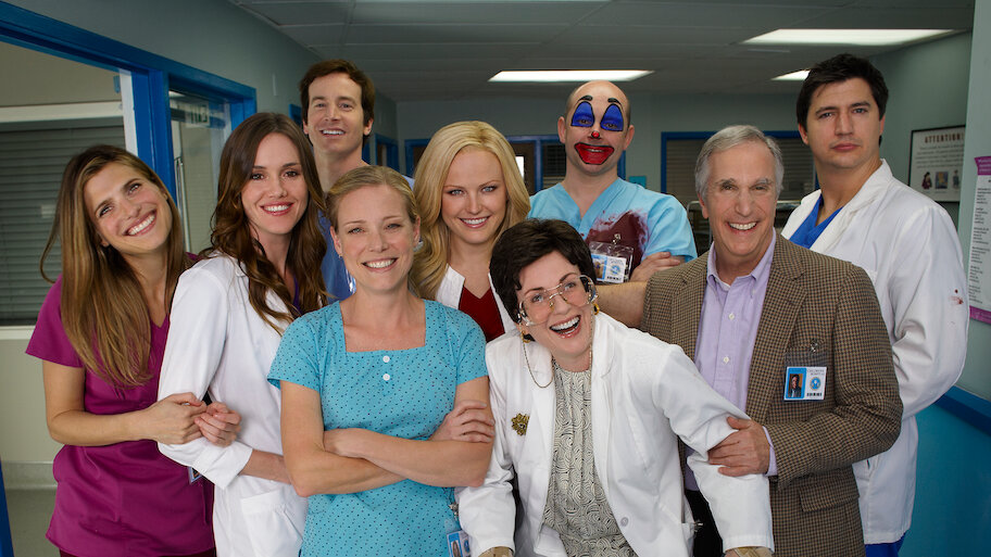 This satirical comedy follows the misadventures of clown makeup-wearing Dr. Blake Downs and other docs at a dysfunctional pediatric hospital.