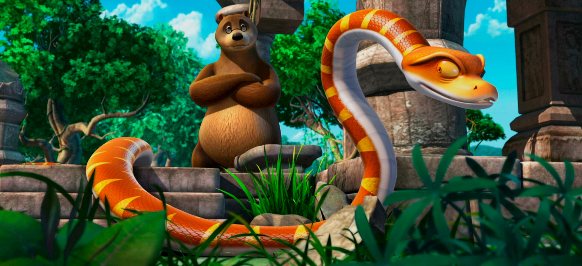 Mowgli and Mani enjoy their time drumming away at logs in the jungle while Shere Khan plots to put an end to the noise.