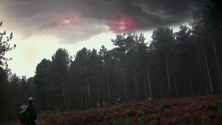 On a hunt for buried treasure in the forest, a trio of prospectors trespassing on military property witnesses the appearance of a menacing UFO fleet.