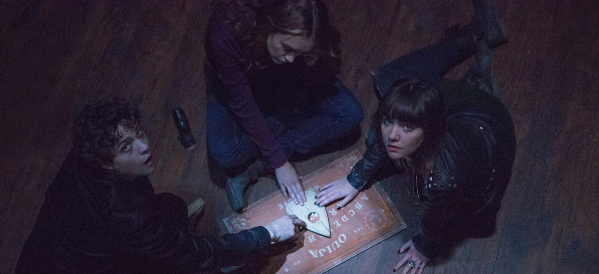 Audience members become hostages trapped in a theater when a rapacious spirit is summoned through a Ouija board and set on the loose.