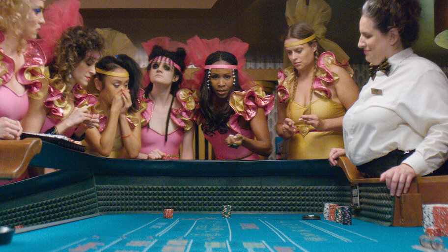 Hours before GLOW's opening show at the Fan-Tan casino in Las Vegas, a national tragedy unfolds on live TV, leaving everyone spooked.