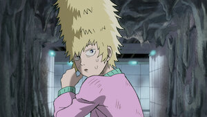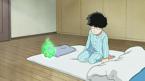 Mob joins the Body Improvement Club to impress his childhood friend, Tsubomi, but faints during a run. He then meets a strange woman.