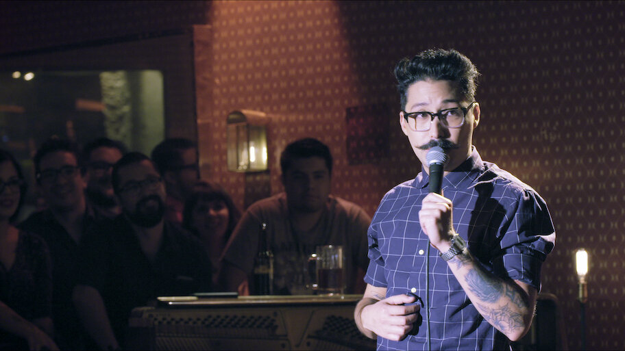 Performing at a bar, Mexican stand-up comedian Mau Nieto dishes on his modest upbringing, his failed relationships and his attempts to stay sober.